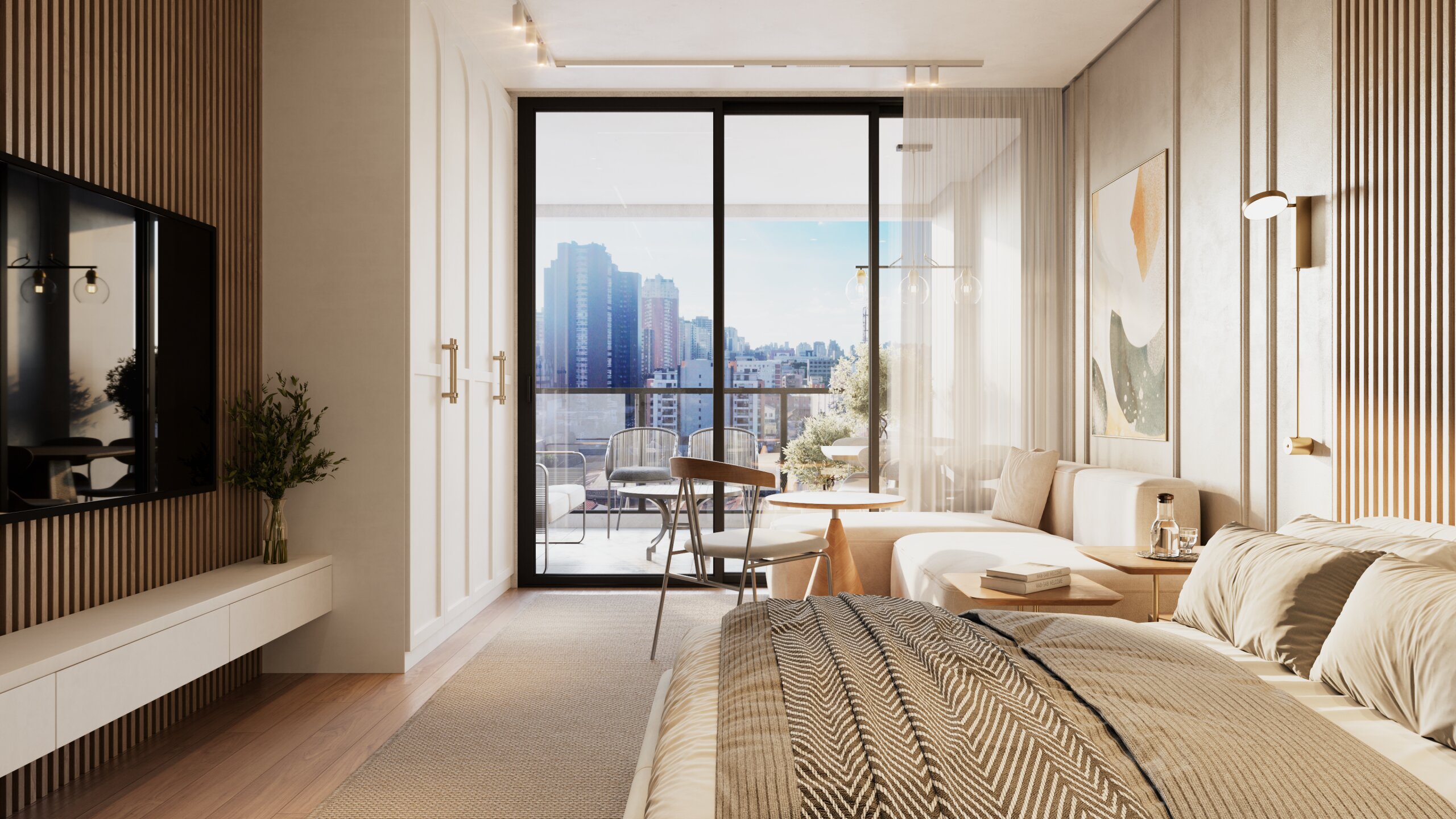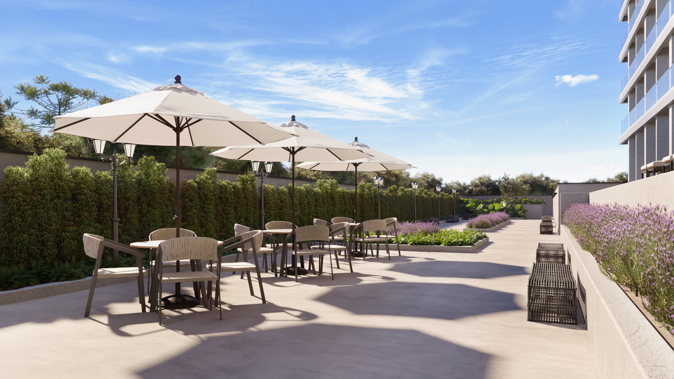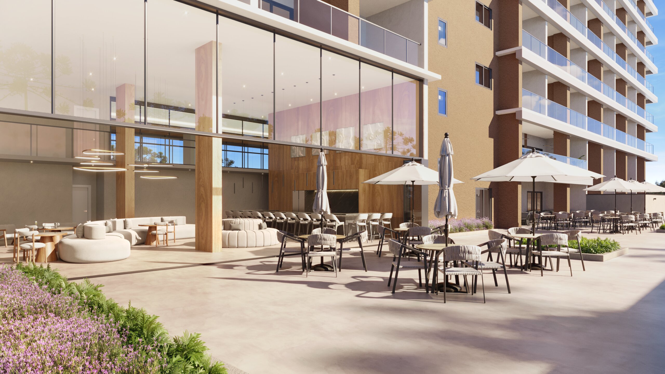 Com duas grandes áreas livres nas laterais do edifício, os apartamentos se