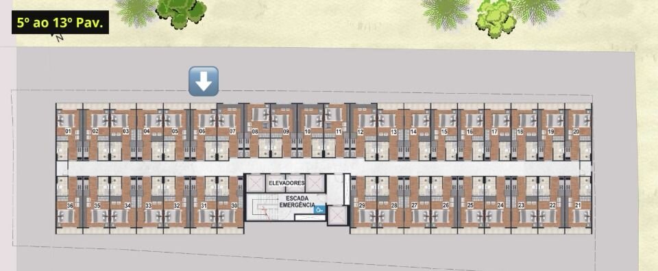 Uma torre com 20 andares. Unidades de studios todas preparadas para locação de curta temporada.