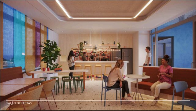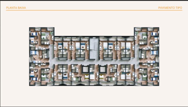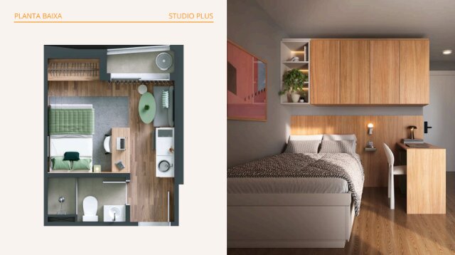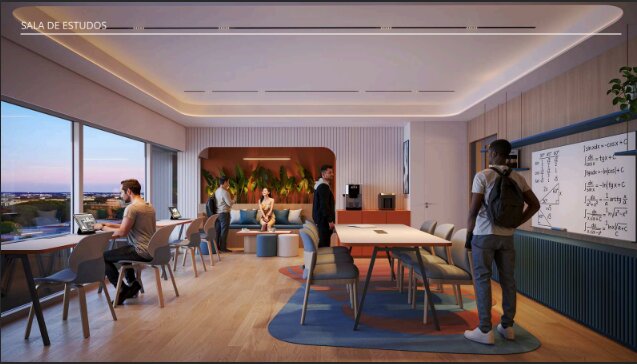 Studio moderno localizado no empreendimento Hive Student Housing, pensado especialmente para o público universitário — um dos segmentos com maior demanda de locação em Curitiba.